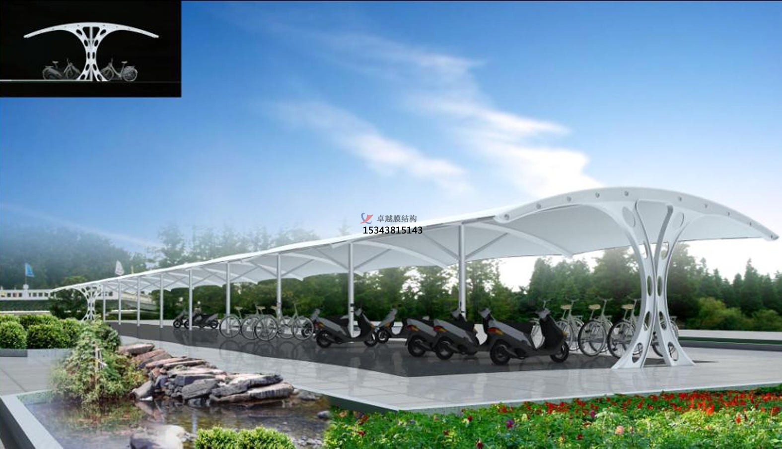 結構形式:骨架式張拉膜充電樁車棚