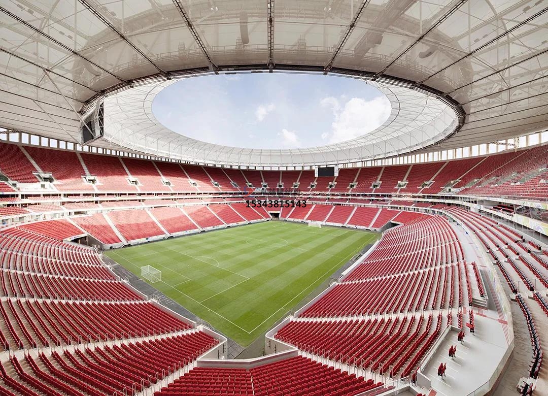 球場(chǎng)膜結(jié)構(gòu)景觀應(yīng)用形式:其應(yīng)用形式主要有球場(chǎng)頂棚、看臺(tái)設(shè)計(jì)、球場(chǎng)圍網(wǎng)和休息區(qū)遮陽(yáng)棚等。在球場(chǎng)頂棚可覆蓋整個(gè)球場(chǎng),為運(yùn)動(dòng)員和觀眾遮陽(yáng)、擋雨,其獨(dú)特的曲面造型還能增加球場(chǎng)的觀賞性??磁_(tái)設(shè)計(jì)方面可營(yíng)造出寬敞、舒適的觀賽環(huán)境,并且易于安裝、拆卸,方便球場(chǎng)維護(hù)。膜結(jié)構(gòu)球場(chǎng)圍網(wǎng)輕盈、美觀,既能起到隔離作用,又不會(huì)影響球場(chǎng)整體美觀,使球場(chǎng)空間更具通透感。也可為觀眾或運(yùn)動(dòng)員提供休息的遮陽(yáng)場(chǎng)所,造型上可以與球場(chǎng)整體風(fēng)格相呼應(yīng),成為球場(chǎng)景觀的一部分。