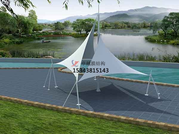 2、景觀膜結構是目前發(fā)展很快的一種新型空間結構,是一種效率極高的張力集成體系,可以充分發(fā)揮鋼索的強度與張拉整體結構的空間作用。它通過鋼骨架、鋼索與膜材共同受力形式穩(wěn)定曲面來覆蓋建筑空間,具有高度的形體可塑性和結構靈活性,即通過對膜材內部施加一定的預張力,使其具備了抵抗外荷載能力,從而充當結構材料的一種結構體系。我公司先后在云浮地區(qū)承接了云浮人民廣場景觀、云浮時代廣場景觀、云浮工業(yè)園區(qū)景觀小品的設計施工,簡介如下: