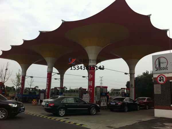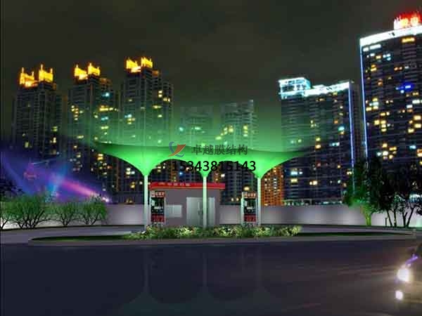 加油站膜結(jié)構(gòu),荷載態(tài)分析:張拉膜結(jié)構(gòu)自身重量很輕,僅為鋼結(jié)構(gòu)的1/5,混凝土結(jié)構(gòu)的1/40;因此膜結(jié)構(gòu)對地震力有良好的適應性,而對風的作用較為敏感。此外還要考慮雪荷載和活荷載的作用。
