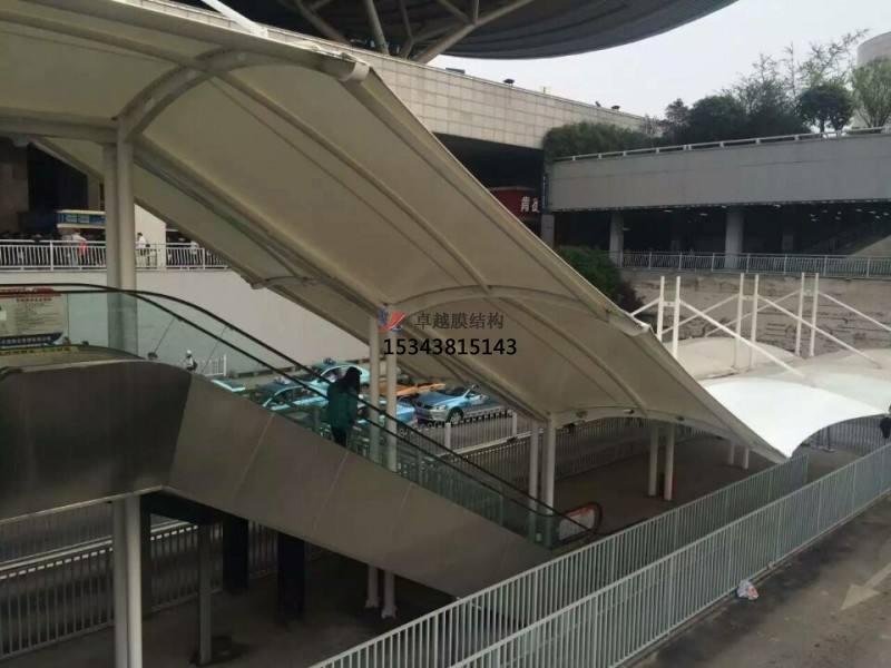 地鐵入口使城市公共空間與建筑空間相鄰的界面,成為城市空間的組成部分它是人們視覺更先接觸的部分,因此,除了功能以外,還應(yīng)有很強(qiáng)的標(biāo)識(shí)性,并能體現(xiàn)建筑的個(gè)性,是建筑環(huán)境和城市景觀的重要組成部分。由于膜結(jié)構(gòu)獨(dú)特的造型是其他結(jié)構(gòu)類型無法比擬的,故成為近來建筑入口經(jīng)常采用的形式。