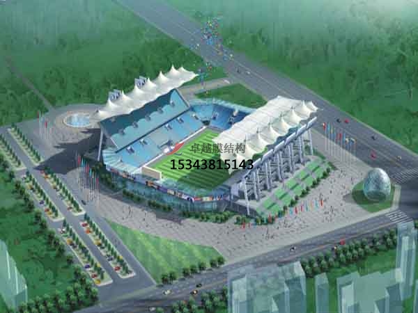 膜結(jié)構(gòu)的結(jié)構(gòu)形式:是由多種高強(qiáng)薄膜材料(PVC或Teflon)及加強(qiáng)構(gòu)件(鋼架、鋼柱或鋼索)通過一定方式使其內(nèi)部產(chǎn)生一定的預(yù)張應(yīng)力以形成某種空間形狀,作為覆蓋結(jié)構(gòu),并能承受一定的外荷載作用的一種空間結(jié)構(gòu)形式。