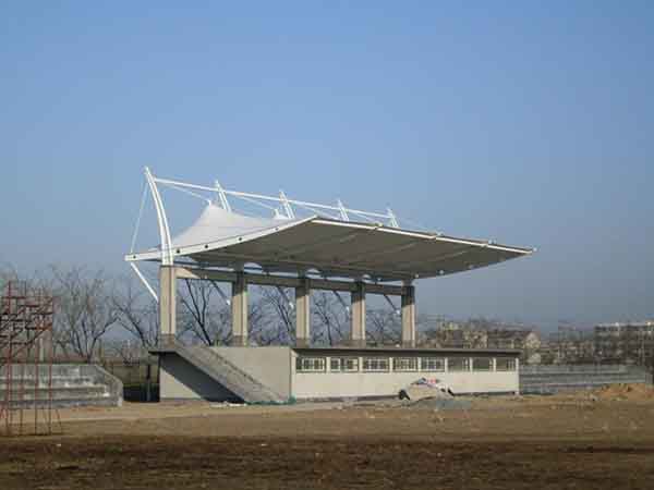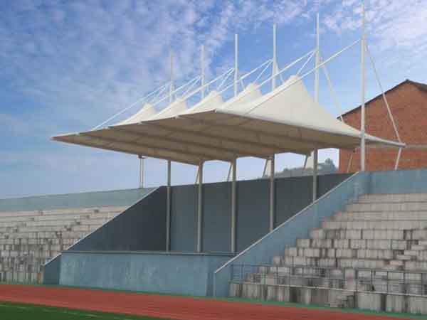 張拉膜看臺(tái)主要用于各類地方體育場(chǎng)主席臺(tái)雨棚,各類學(xué)校體育場(chǎng)看臺(tái)雨棚遮蓋,我公司是國內(nèi)較早從事大懸挑張拉膜結(jié)構(gòu)看臺(tái)設(shè)計(jì)施工的專業(yè)廠家,下面介紹一下我們?cè)诮B興市周邊縣市完工的一些張拉膜看臺(tái)設(shè)計(jì)施工案例,我公司先后在紹興周邊承接了紹興文理學(xué)院張拉膜看臺(tái)雨棚、紹興職業(yè)技術(shù)學(xué)院張拉膜看臺(tái)罩棚、浙江農(nóng)業(yè)商貿(mào)職業(yè)學(xué)院張拉膜看臺(tái)遮陽棚等設(shè)計(jì)施工項(xiàng)目,簡介如下: