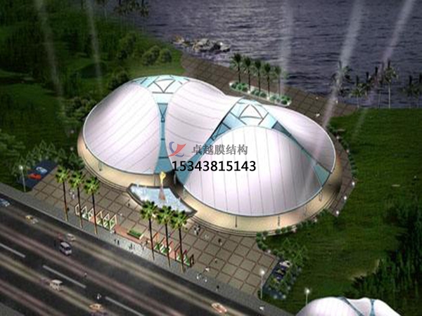 膜結(jié)構(gòu)突破了傳統(tǒng)的建筑結(jié)構(gòu)形式,具有造型優(yōu)美、飄逸自然、融藝術(shù)、力學(xué)于一體,可充分發(fā)揮建筑師的想象力,建造成各種造型,且色彩豐富,膜結(jié)構(gòu)被譽(yù)為21世紀(jì)的現(xiàn)代高科技綠色建筑。
