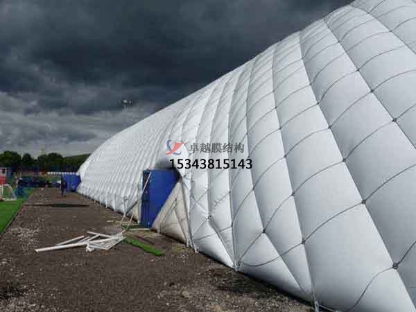 充氣膜體育館是用特殊的建筑膜材做外殼,配備一套智能化的機電設備在氣膜建筑內(nèi)部提供空氣的正壓,把建筑主體支撐起來的一種建筑結(jié)構(gòu)系統(tǒng)。