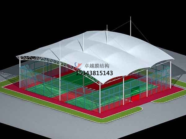 籃球場膜結(jié)構(gòu)罩棚是指安裝在籃球場上方的膜結(jié)構(gòu),起到遮陽擋雨的作用。對于場地要求低,基本上所有籃球場地都可以做膜結(jié)構(gòu)頂棚,相比混凝土結(jié)構(gòu)的風(fēng)雨球館,施工周期更短,造價更低。膜的透光性比較好,所以可以保證場館內(nèi)的采光。先設(shè)計(jì),然后進(jìn)行材料加工,現(xiàn)場安裝,施工效率更高。下面介紹一下我們在白城市周邊縣市完工的一些籃球場膜結(jié)構(gòu)罩棚設(shè)計(jì)施工案例。