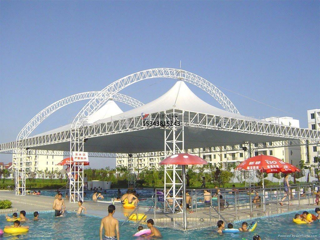 膜結(jié)構(gòu)由鋼結(jié)構(gòu)立柱和膜結(jié)構(gòu)頂棚構(gòu)成。立柱多由金屬合金制作,如鋼,鋁等,質(zhì)量輕且質(zhì)地硬,膜結(jié)構(gòu)頂棚則是由膜材料制成而膜材料分別有(PVC膜材料、PTFE膜材料、ETFE膜材料)。